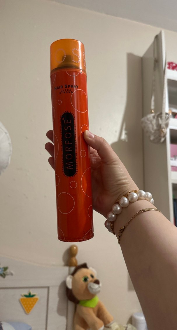 Morose saç spreyi, 400 ml turuncu kutuda güçlü tutuş ve ferahlatıcı formül sunar. Kalıcı saç modelleri için uygundur. ♀️
