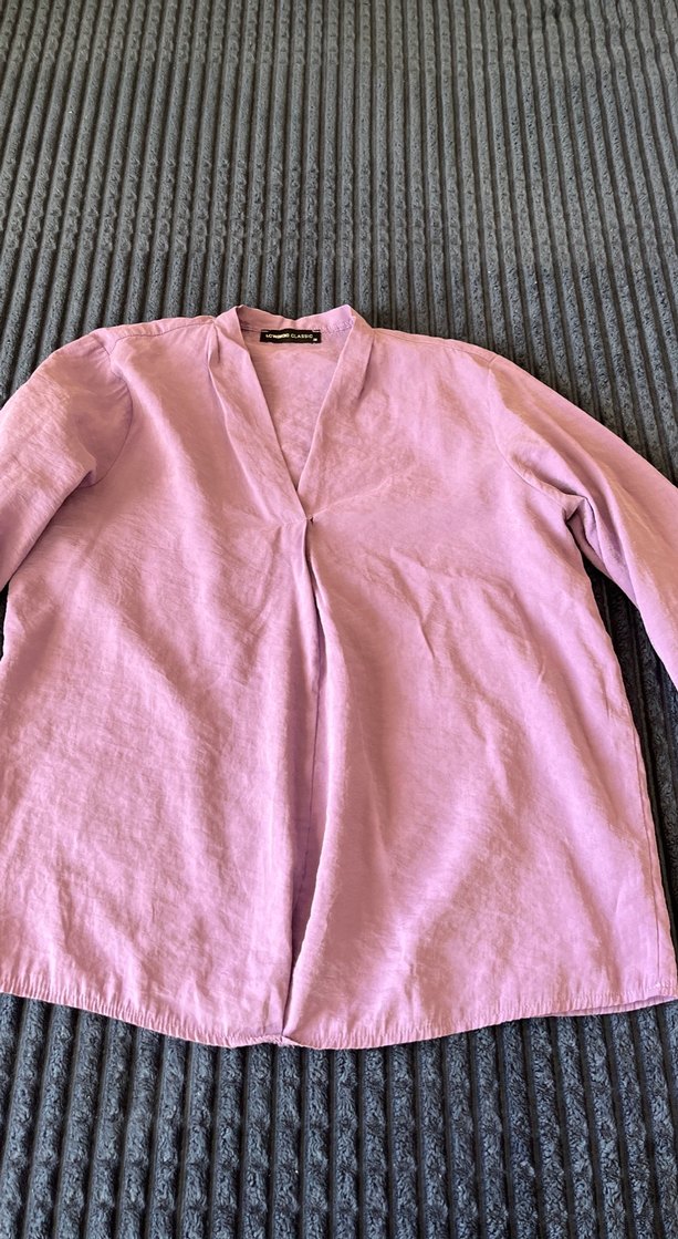 V yaka, uzun kollu,mor gömlek. Rahat kesim ve sade tasarımıyla minimalist tarzda günlük kullanıma uygun.
