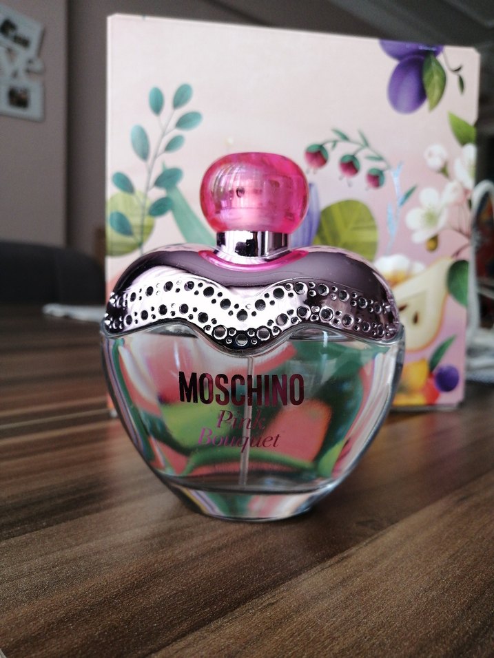 Moschino Pink Bouquet kadın parfümü, pembe kapaklı ve çiçek desenli şık şişede sunulur. Ferah ve feminen kokusu vardır. Ananas, ahududu,bergamot.