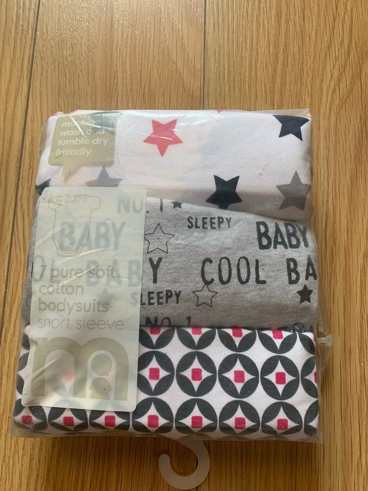 Mothercare bebek body , Yumuşak pamuk kumaştan yapılmış, baskılı desen ve yazılı gri bebek body . Kısa kollu ve kurutma makinesinde kullanılabilir.