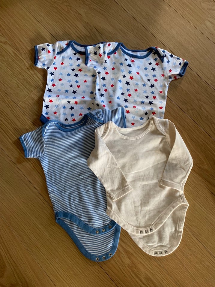Mothercare body 9-12 ay, Bebek erkekler için kısa kollu, yuvarlak yaka pamuklu body. Yıldız desenli, çizgili ve sade krem uzun kollu seçenekler. Çıtçıtlı kolay giyimli tasarım.