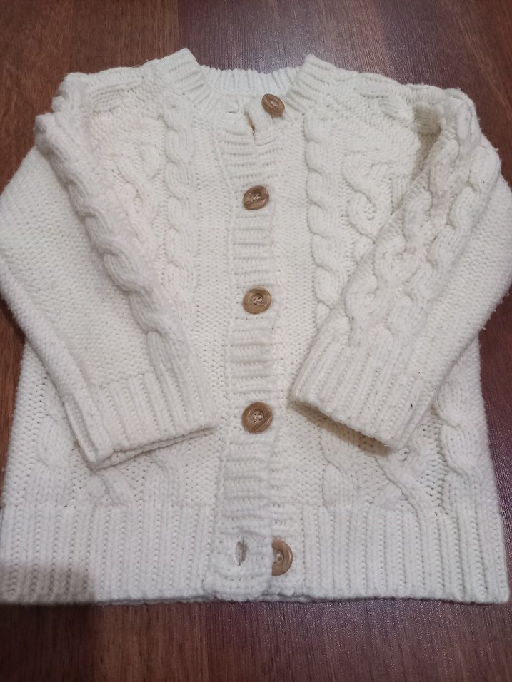 2-3 yaşa uygun MOTHERCARE saç örgüsü örme hırka.Çok temiz ve az kullanıldı.Hiçbir yerinde bir sorunu yok. Mevsim geçişlerinde tek başına kullanılabilecek kalınlıktadır.