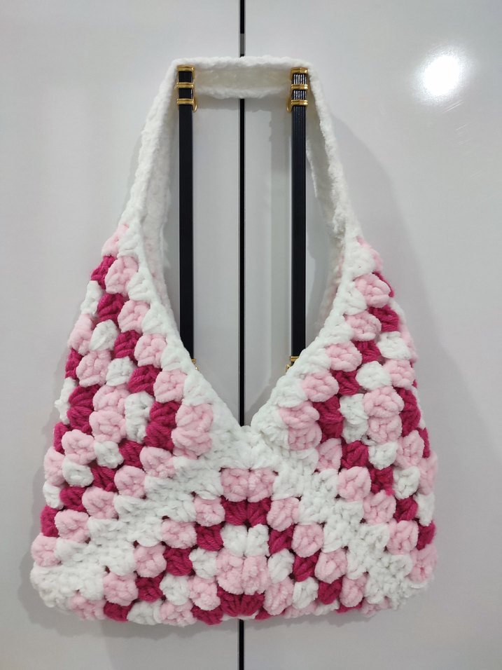 kadife ipten yumuşak dokulu motifli el örgüsü çanta