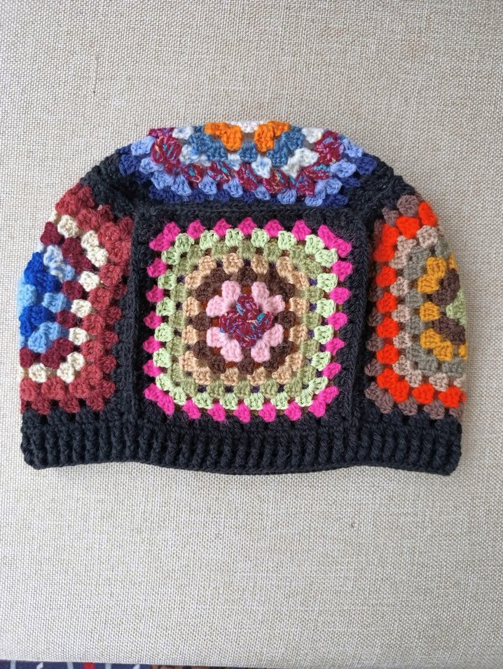 Kadın bere, çok renkli ve koyu tonlarda örgüdesenlerle bohem tarzda, rahat ve retro bir görünüm sunar.
