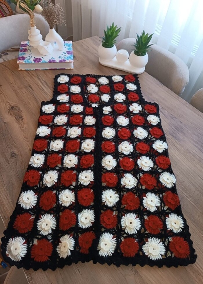 El işi motifli yelek istenilen boy ve bedende yapılır 38 40 42 44 bendene kadar olur daha büyük beden için iletişime geçebilirsiniz