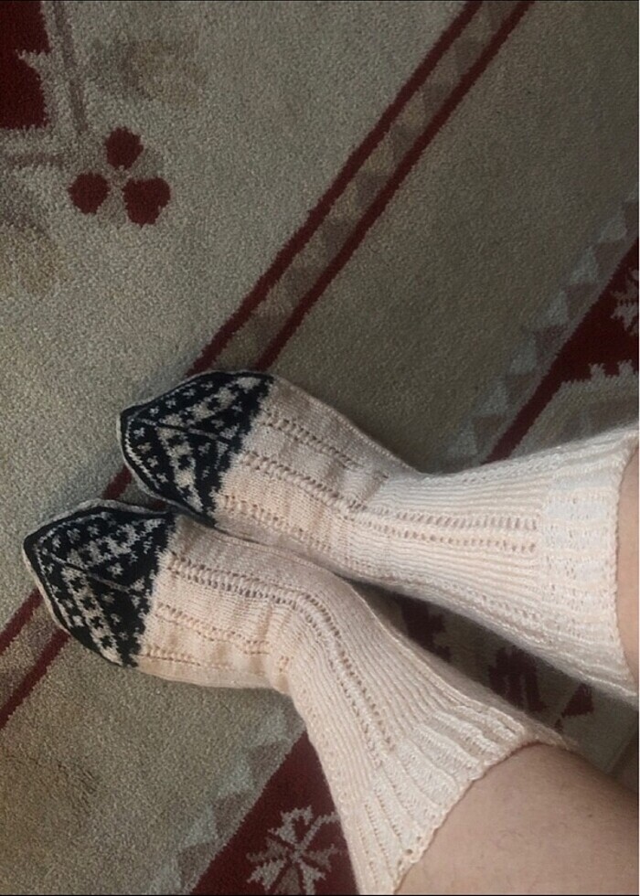 Uzun bilekli motifli ve yun çorap. Yeni . Hediye geldi ama Ben uzun ve Kalinin coral kullanamiyorum . Cunku oldukca buyuk geldi . Ancak cok sıcak tutuyor ve guzel orgulu.