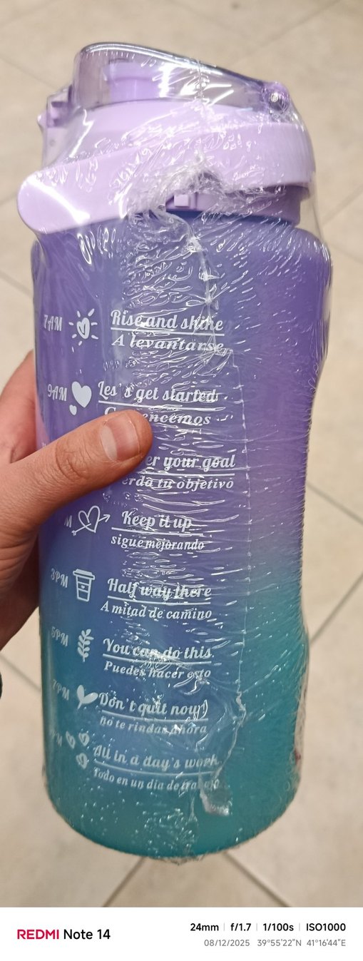 Mor renkte, gün içi beslenme sürecini motive eden zaman işaretleri bulunan pastel renkli bebek biberonu.