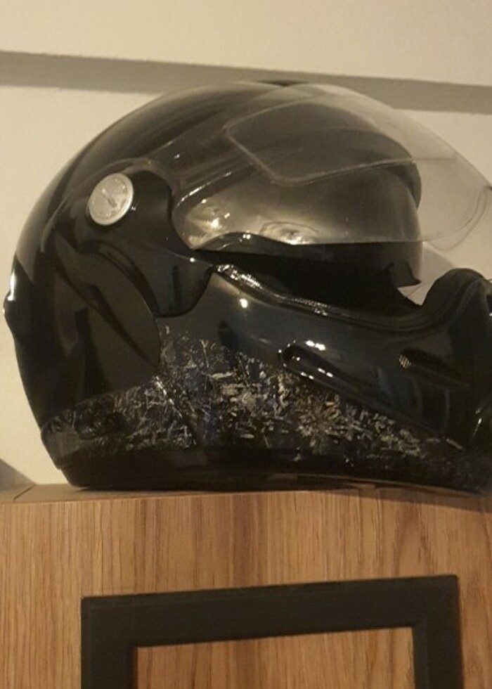 Parlak siyah renk motor kaskı İçindeki pedleri çok az yıprandı ama iyi durumda kırığı yok