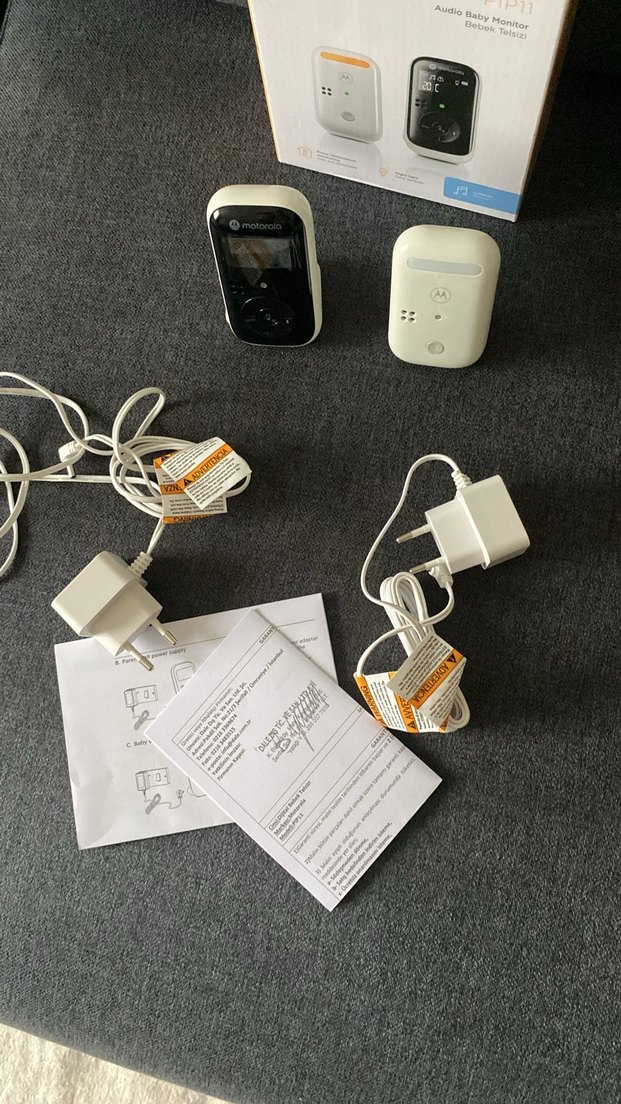 Motorola bebek telsizi, kompakt tasarımı, net ekranı ve kolay kullanımlı düğmeleriyle bebek takibi sağlar. Beyaz ve gri renktedir.