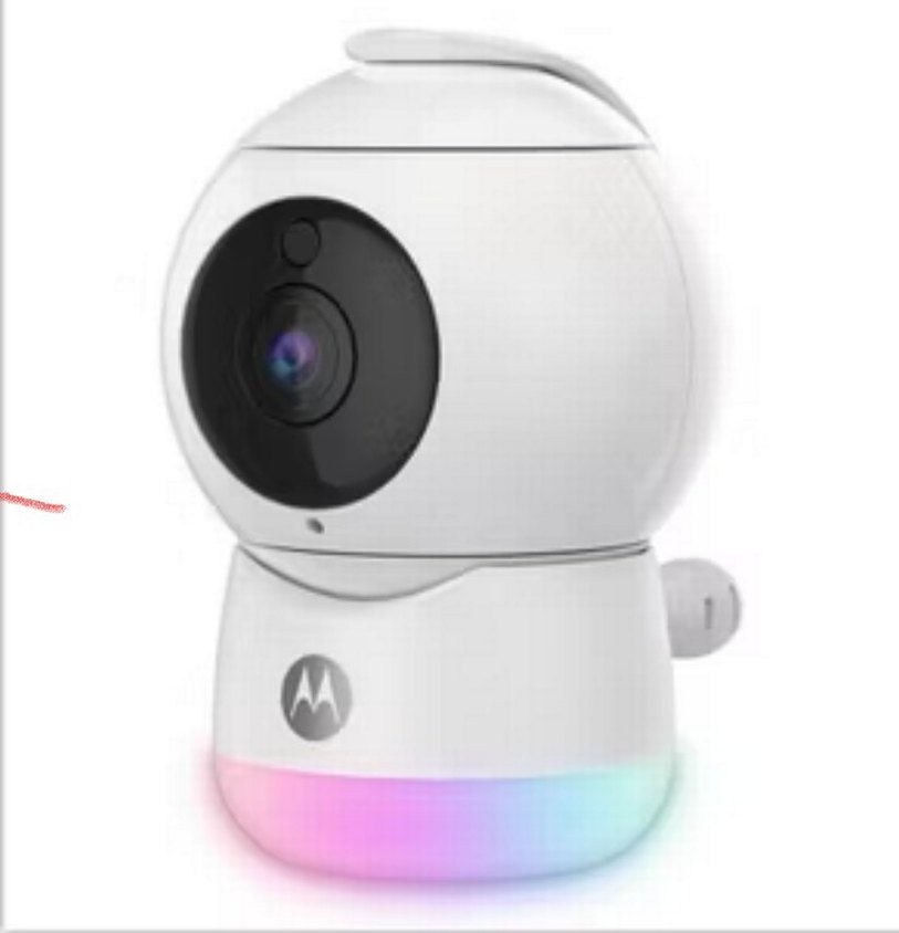 Motorola beyaz renkte, küresel tasarımlı ve renkli ışıklı tabana sahip bebek monitörü kamerası. Motorola PEEKABOO Gece Lambalı Dijital Bebek Kamerası