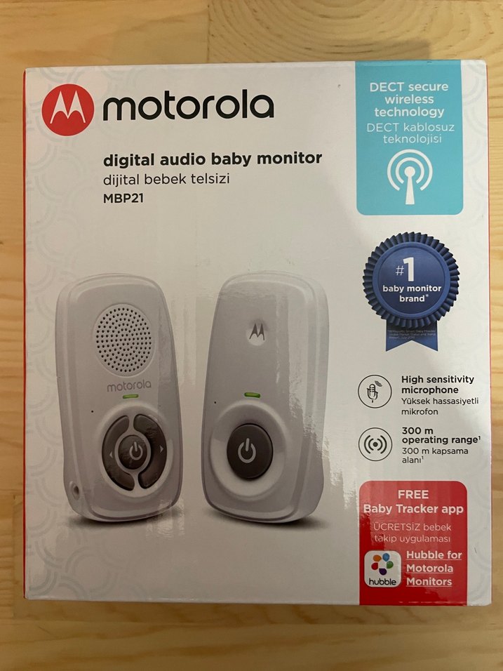 Motorola MBP21 dijital bebek telsizi, yüksek hassasiyetli mikrofon ve DECT kablosuz teknoloji ile 300 m kapsama alanı sunar. Ücretsiz Bebek Takip uygulaması dahildir.