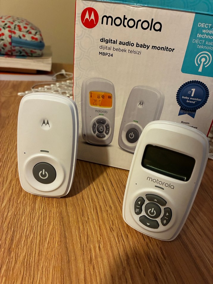 Motorola MBP24 dijital bebek telsizi, beyaz renkte, net ses ve kolay kullanımlı tuşlara sahiptir. Uzaktan bebeğinizi takip etmek için iki birim içerir.