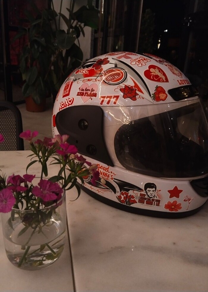 Full face kask, çok az kullanıldı, sorunsuz, kazasız. Kaskı kendim süsledim. M bedendir (57-58cm).