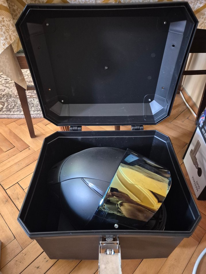 Sıfırdır. Reflektör bantlı. Bağlantı parçaları dahil (motosiklete bağlanan demiri hariçtir) Hafif kusur sayılacak kilit mekanizmasında nokta olarak sanırım pas lekesi var . Kullanıma engel değil. İADE VE İPTAL KABUL EDİLMEYECEKTİR
