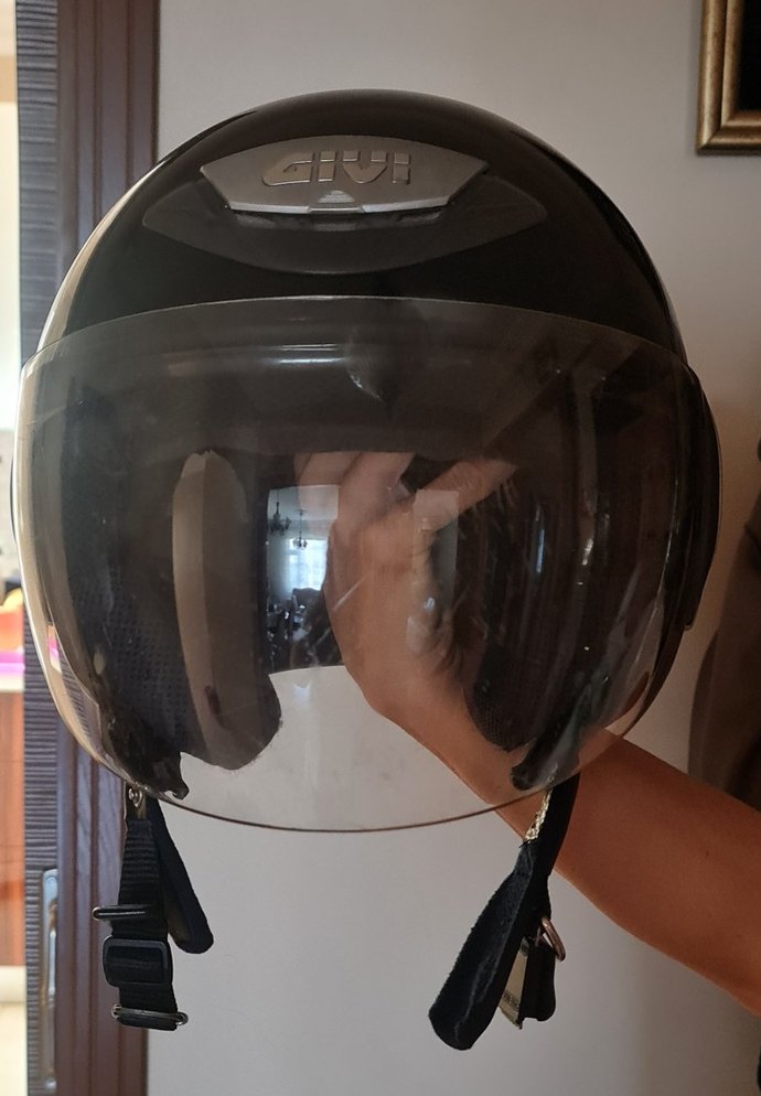 Givi Marka ,Parlak siyah renkli, cam vizörlü motosiklet kaskı. Minimalist tarzıyla rock punk havasına uygun.