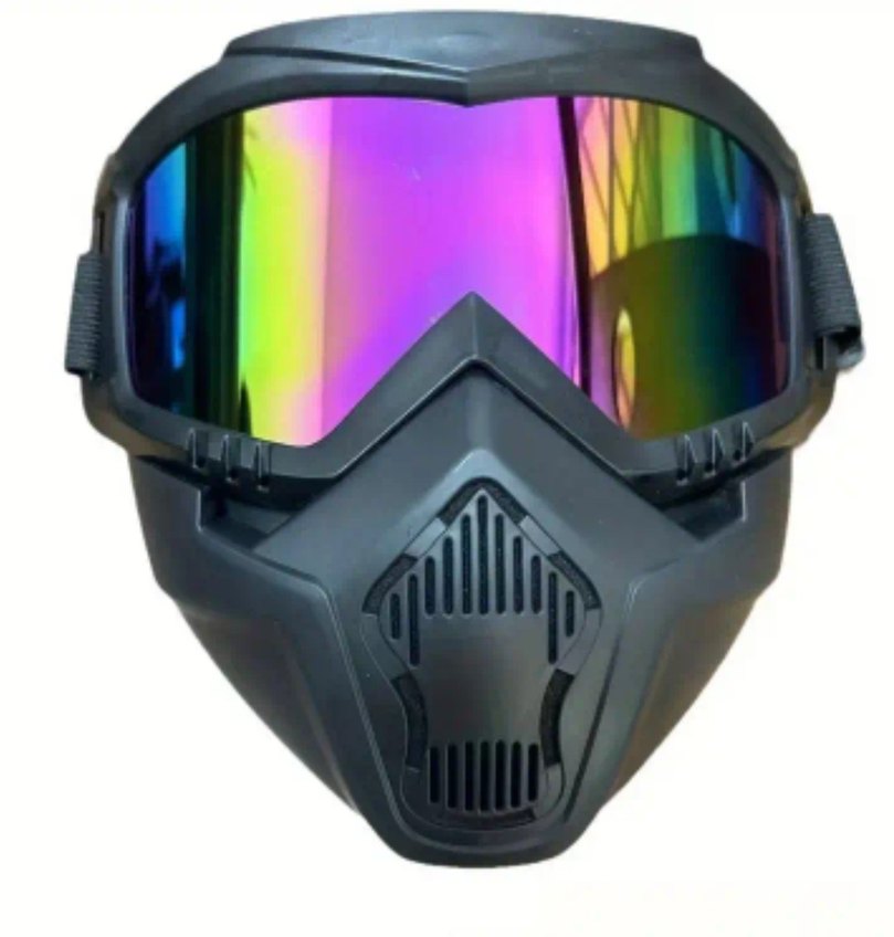 ithal markalı, plastik malzemeden yapılmış, gokkusagi renkli ve şeffaf vizörlü koyu renkli motosiklet maskesi
