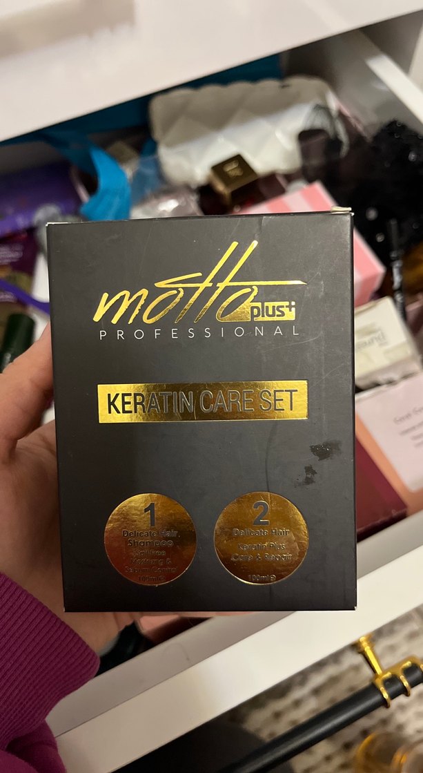 Motto Plus Professional Keratin Bakım Seti, nazik bakım şampuanı ve koruyucu saç maskesi içerir. Saçlarınızı yumuşak ve sağlıklı tutar. ♀️