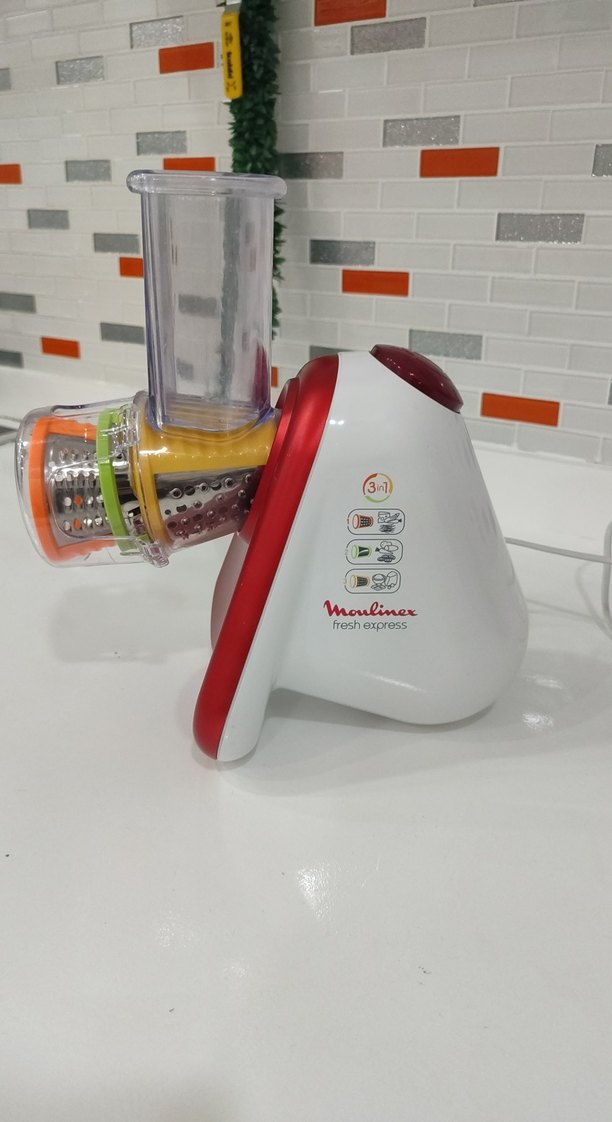 Moulinex Fresh Express meyve sıkacağı, dilimleme, rendeleme ve doğrama için 3'ü 1 arada değiştirilebilir tamburlara sahiptir. Beyaz ve kırmızı renklerde kompakt tasarıma sahiptir. sadece birkaç kez kullanıldı. saniyeler içerisinde çok iyi rendeleme yapabilirsiniz. ihtiyaç fazlalığından satıyorum.