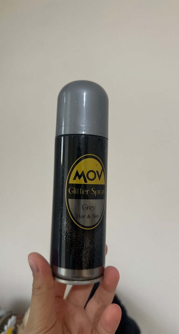 MOV Gri simli saç ve cilt spreyi, parlak bir efekt sağlar. Siyah ve gümüş renkli şişede sunulmaktadır. ✨ hiç kullanılmadı