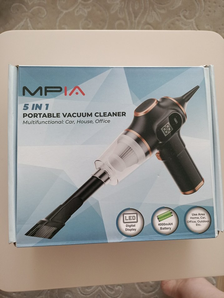 MPIA 5in1 taşınabilir elektrikli süpürge, LED dijital ekran ve 4000mAh batarya ile araba, ev ve ofis için çok fonksiyonludur.