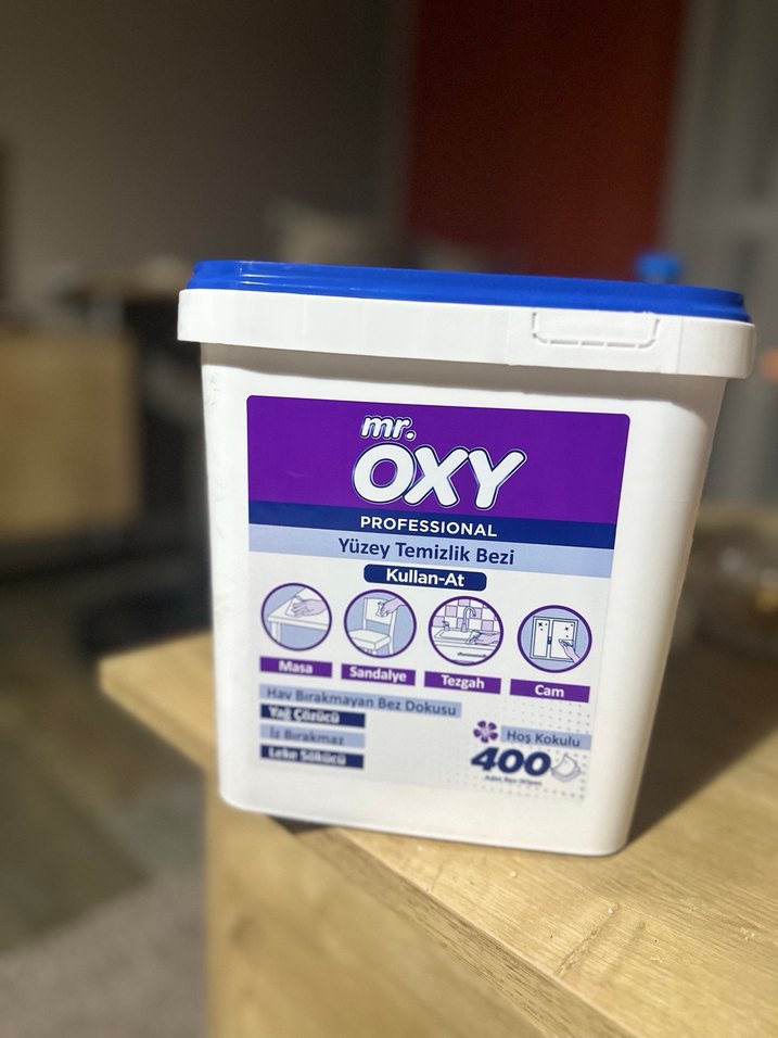 Mr. Oxy Profesyonel yüzey temizlik bezi, masa, sandalye, tezgah ve cam yüzeylerde kullanılmak üzere hoş kokulu, 400 kullan-at bez içerir. Trenfyolda 600 TL ye satılıyor kaçırmayın
