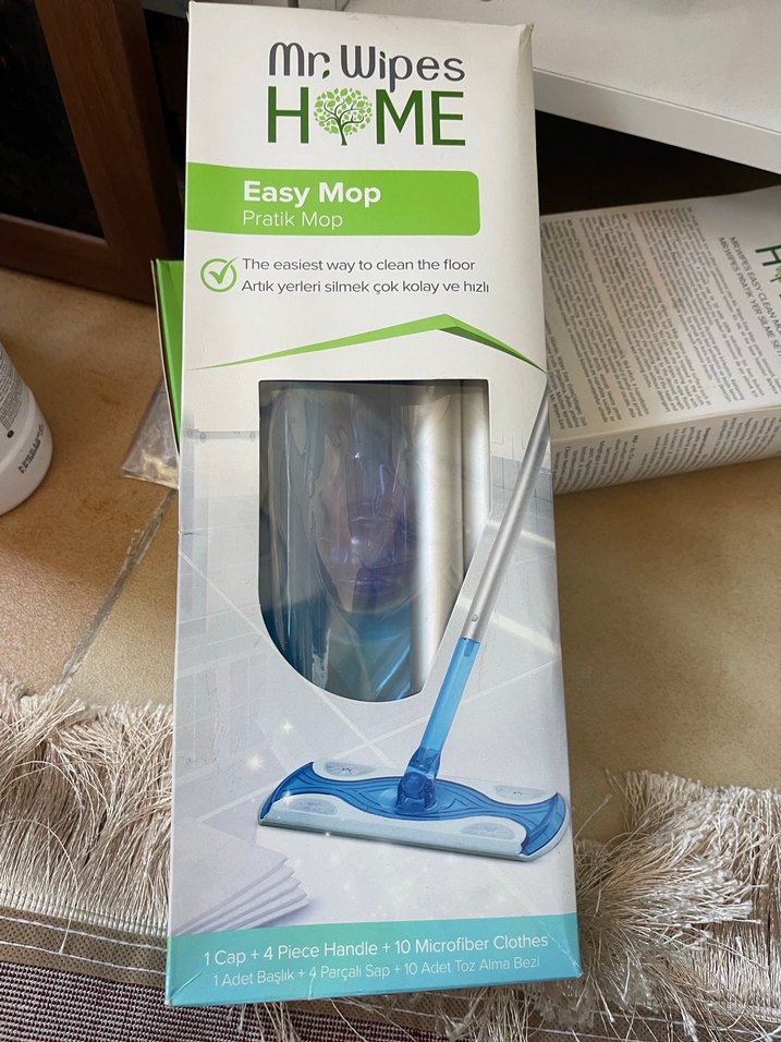 Kullanım bezleri içinde pratik mop #mop #farmasi Mr. Wipes Easy Mop, 1 kapak, 4 parçalı sap ve 10 mikrofiber bez ile hızlı ve kolay zemin temizliği sağlar.