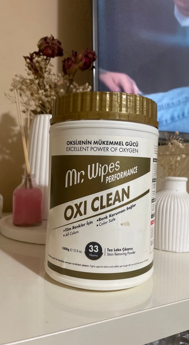 Mr. Wipes Oxi Clean, oksijenin mükemmel gücüyle tüm renkler için güvenli, zor lekeleri çıkaran beyaz toz temizleyicidir.