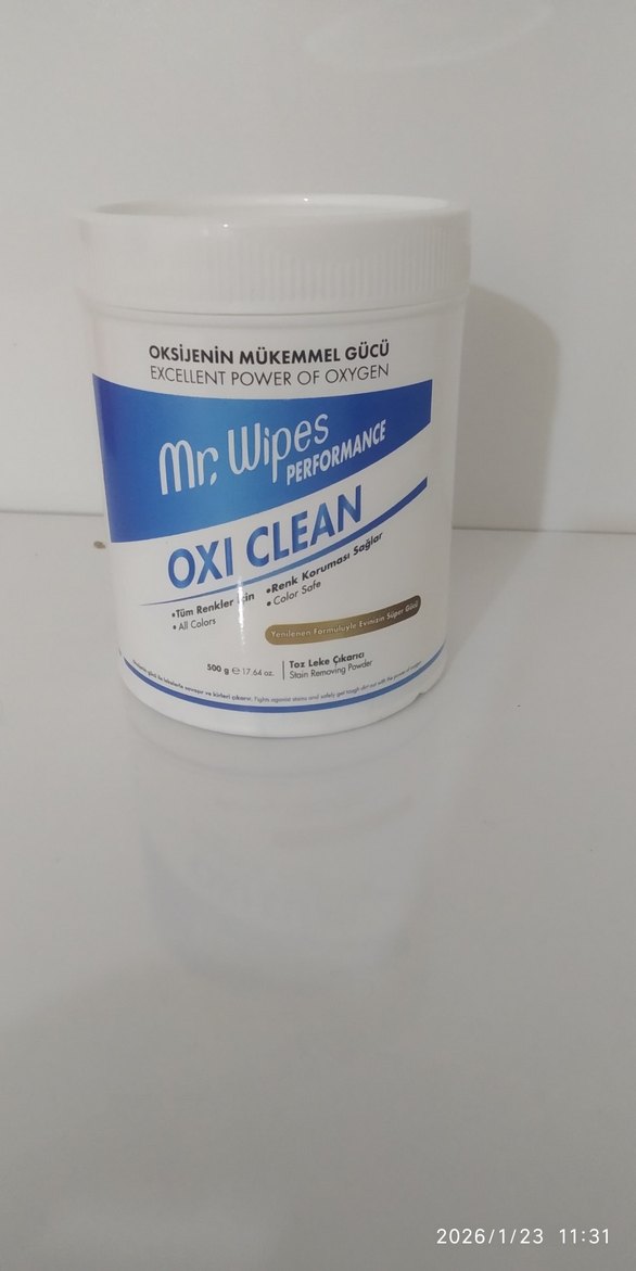 Mr. Wipes Oxi Clean, oksijenin mükemmel gücüyle leke çıkaran tozdur. Renk koruyucu özelliği vardır ve tüm renkler için uygundur.