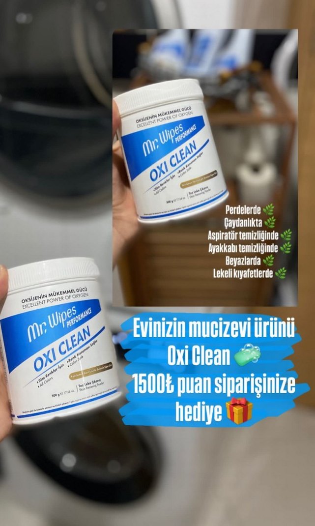 Mr Wipes Oxi Clean, perdelerde, ayakkabı ve beyazlarda etkili oksijenli güçlü bir temizleyici tozdur. Lekeli kıyafetlerde de kullanılır.