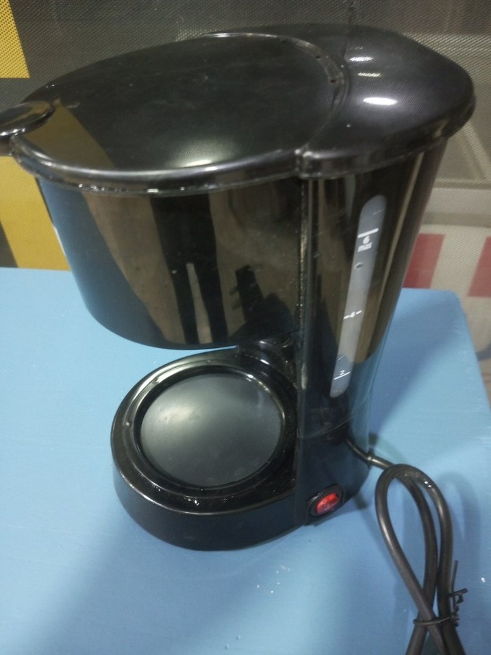 Siyah kahve makinesi, su seviyesi göstergesi ve açma-kapama düğmesine sahiptir. Kompakt yapıda, yuvarlak demleme alanı ve çıkarılabilir kablo bulunur. ☕