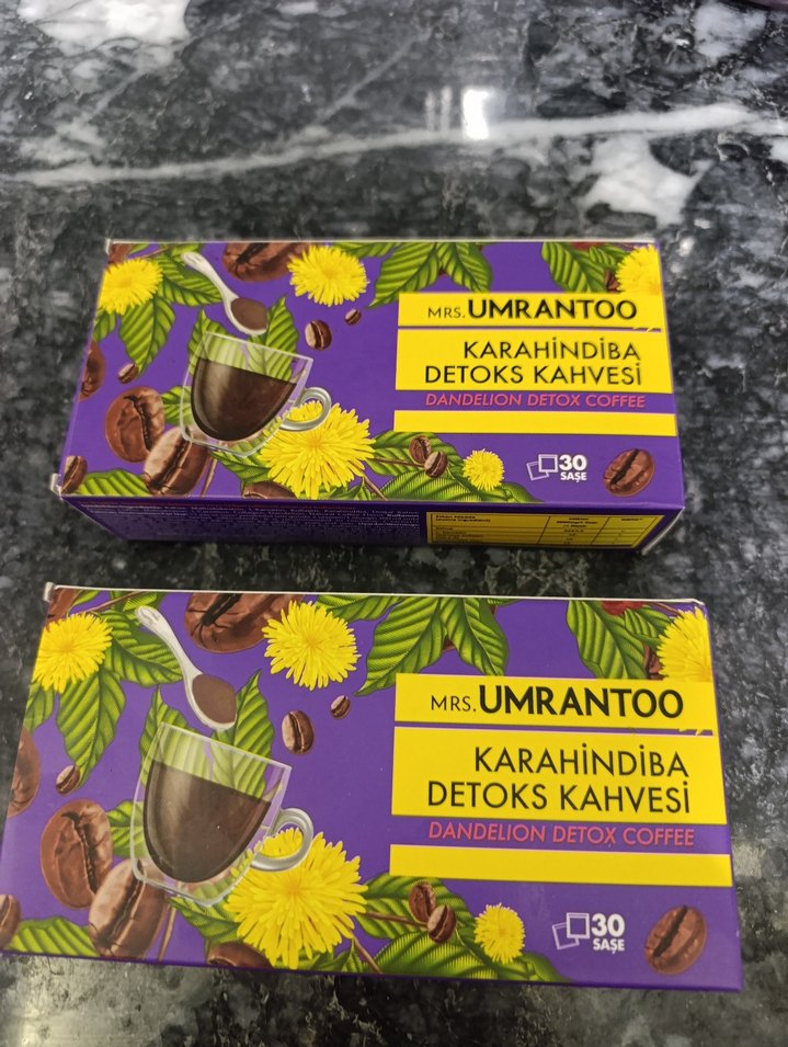 Mrs. Umrantoo Karahindiba Detoks Kahvesi, 30 saşe halinde sunulur. Karahindiba ve kahve çekirdeği içerir, detoks etkisi sağlar. ☕️