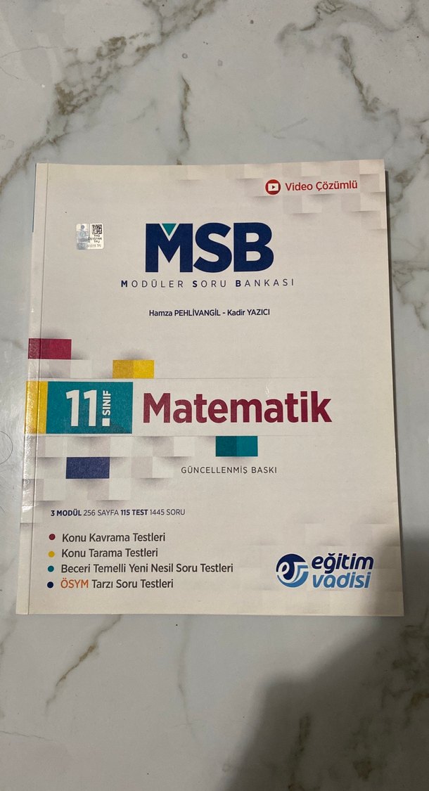 MSB 11. sınıf matematik soru bankası, güncellenmiş baskı ile konu kavrama, tarama, beceri temelli yeni nesil ve ÖSYM tarzı testler içerir. 256 sayfa, 1445 soru ve video çözümlü sadece 3. Modülü mevcut değildir