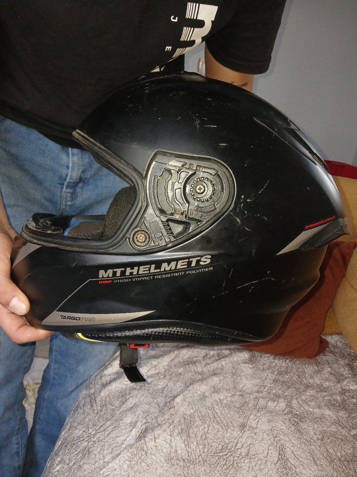 MT Helmets Siyah Deri Kemerli Motosiklet Kaskı