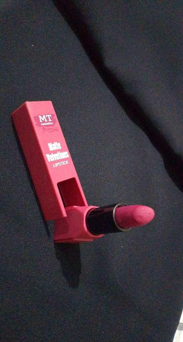 MT markalı, renkli pembe tonunda, yumuşak dokulu ruj. Canlı dudaklar için uygun. Ambalajı pembe ve MT logosu bulunur.