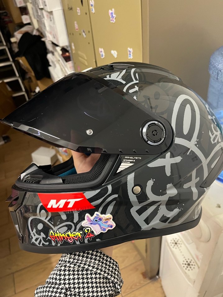 MT STİNGER 2 RAMF1 GLOSS HAFİF CİZİKLİ SİYAH VİZÖR/ŞEFFAF VİZÖR ORJ İKİ VİZÖRDE FİYATA DAHİL. M BEDEN siyah MT biker kask, koyu baskılı desenler ve kayışlı tokası ile plastik malzemeden üretilmiştir. Tonlu vizör ve punk tarzı çıkartmalar içerir. ️