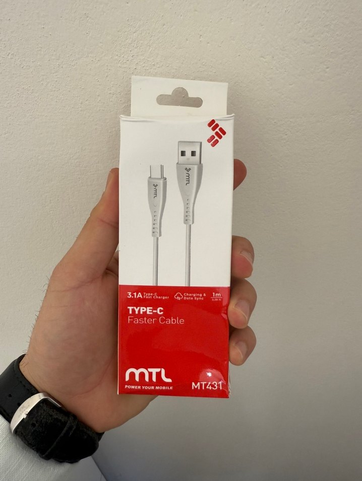 MTL MT431 Type-C bağlantılı, 3.1A hızlı şarj desteği sunan 1 metrelik beyaz kablo. ⚡