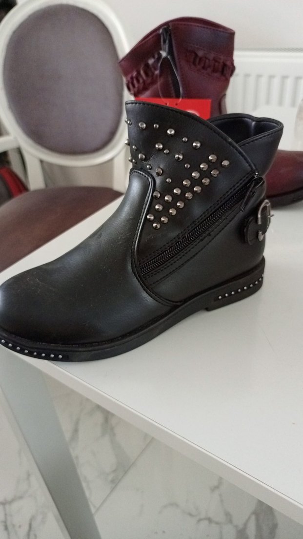 mu ya Siyah Deri Tokalı Biker çocuk Botu