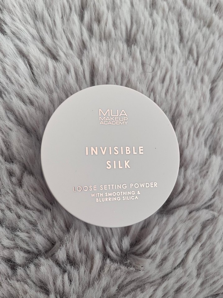 MUA Invisible Silk gevşek sabitleyici pudra, yumuşatıcı ve bulanıklaştırıcı silika içerir.