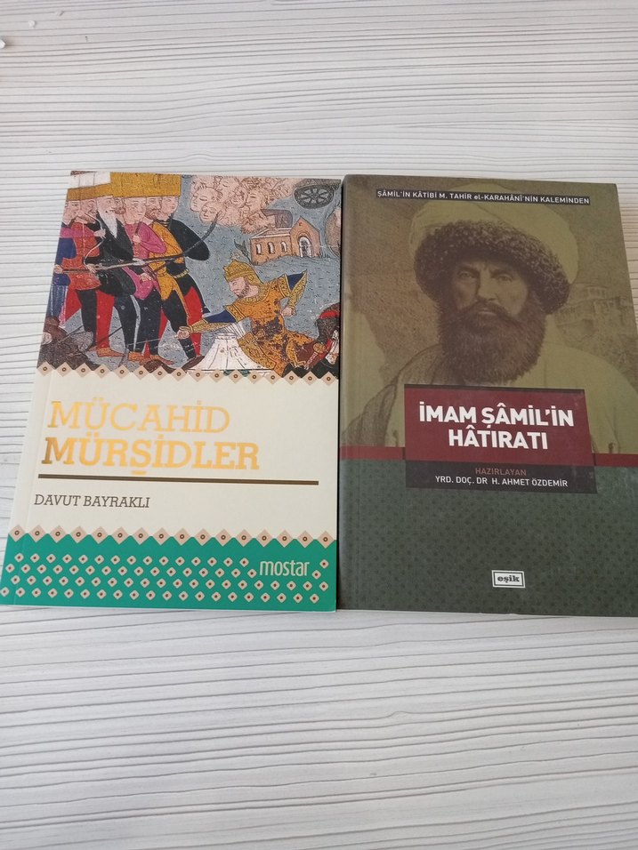 Davut Bayraklı'nın "Mücahid Mürşidler" ve "İmam Şamil'in Hatıratı" adlı Osmanlıca tarihi metin ve anı kitapları.