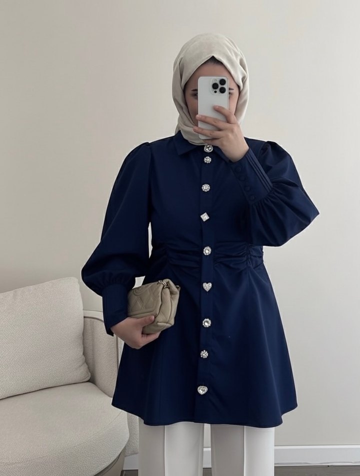 Prenses tunik, özel ithal düğmeler kullanılmıştır.