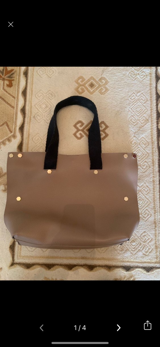 Bej renkli deri kadın çantası, tokalı detaylara ve siyah saplara sahiptir. Trendy casual sokak stiline uygundur, desensizdir. Temiz sorunsuz