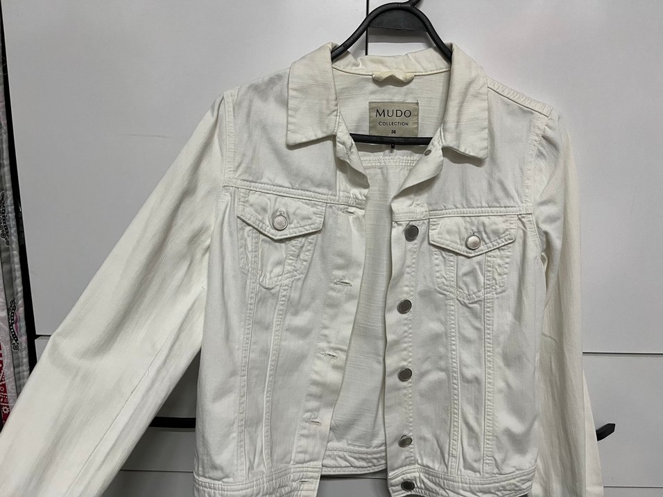 Mudo markasının beyaz denim düğmeli kadın ceketi, normal kesim ve uzun kolludur. Notch yaka ve midi boyuyla günlük sokak stiline uygundur. Unpatterned ve rahat kullanımlı.