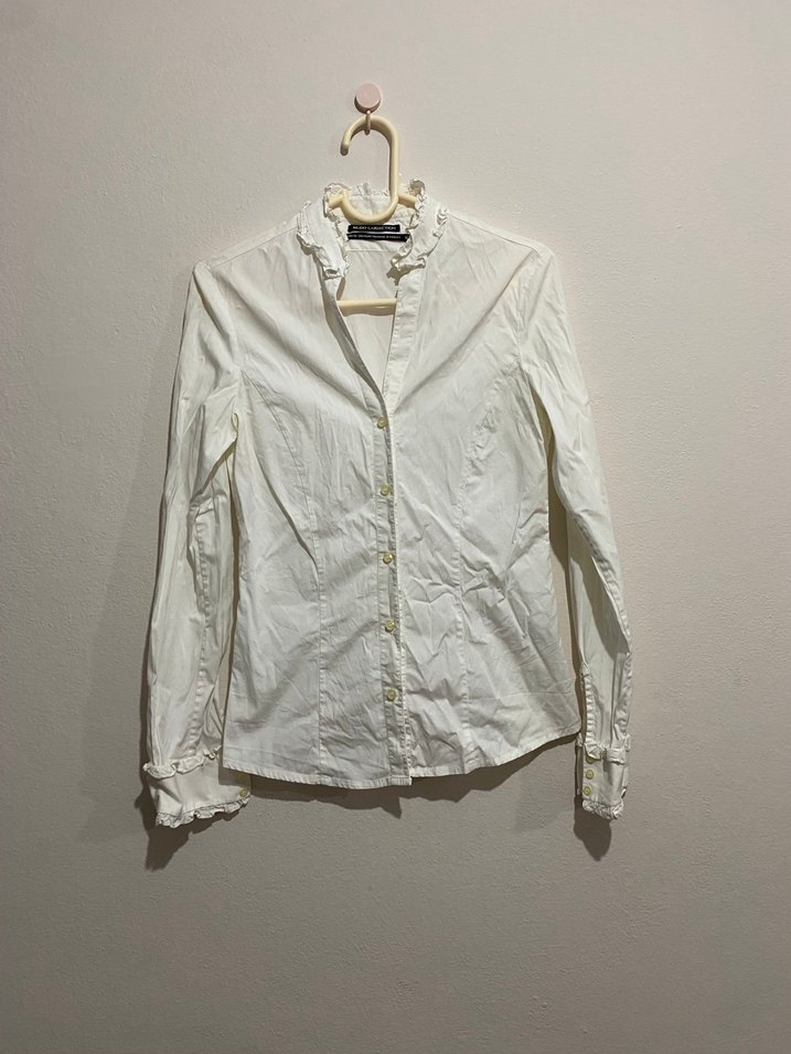 MUDO marka, Beyaz kumaştan, düğmeli ve uzun kollu, yakalı gömlek. Ofis ve günlük kullanıma uygun, rahat kesim ve sade şık tasarım sunar. S bedendir