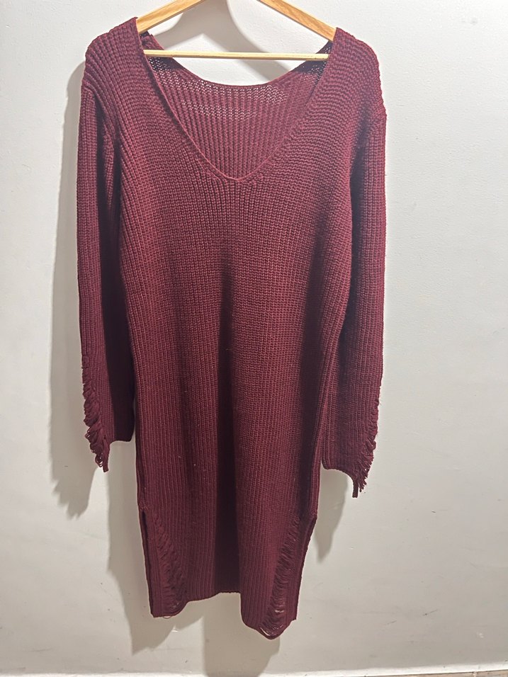 Bordo kol ve yırtmaçlarında detay bulunan kazak elbise. İyi durumda çok az kullanıldı.