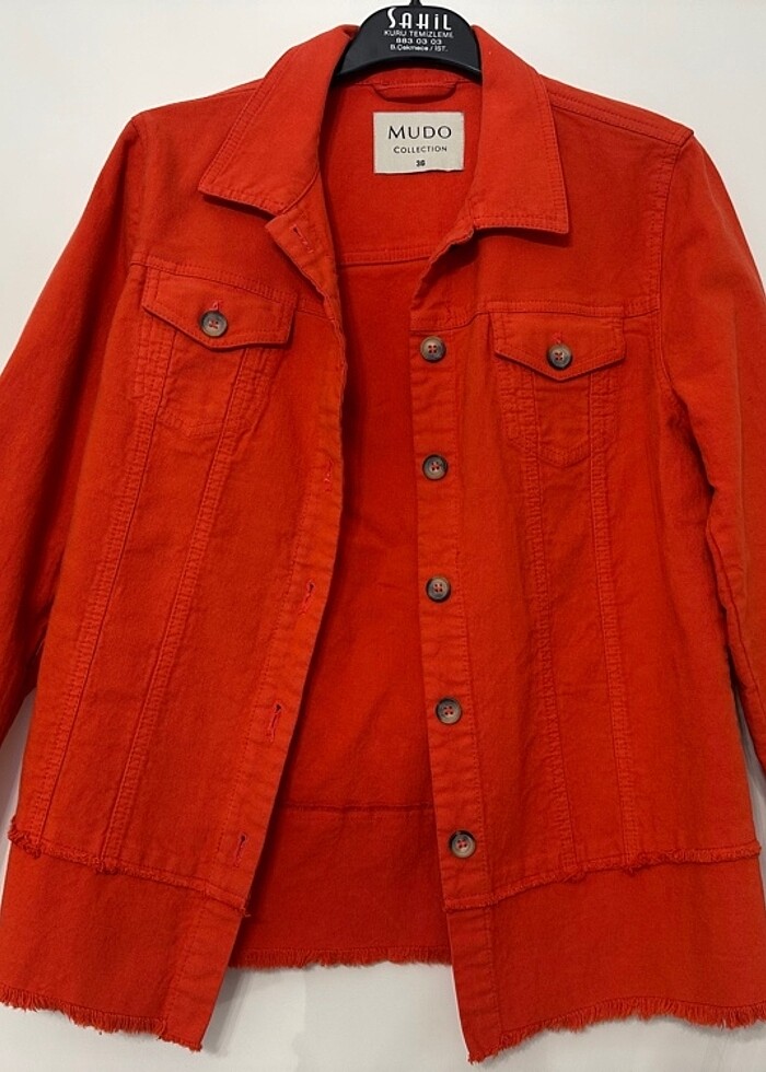 Kot cekettir. Bir kere giyildi nar çiçeği rengidir tertemizdir