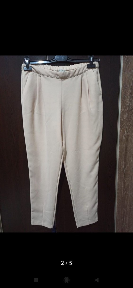 Bej renkte, pilili ve regular fit kadın kumaş pantolon. Yumuşak sentetik kumaştan üretilmiş, minimalist ve trend sokak stiline uygun, ofis için idealdir.