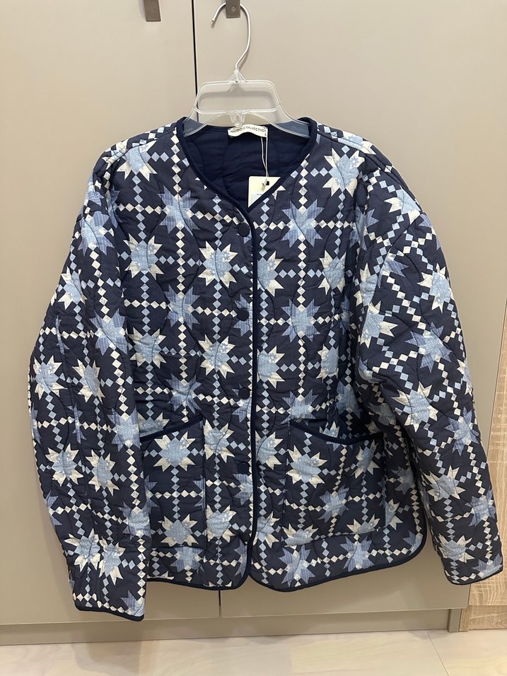 • Marka: Mudo Collection • Beden: L • Renk: Lacivert, açık mavi ve ekru yıldız desenli • Model: Yuvarlak yaka, kapitone, önden çıtçıtlı, cepli ceket • Durum: Yeni , etiketli. • Kusur: Alttan 2. çıtçıt sökük. Onun dışında ciddi bir yıpranma, leke yok.Fotograf koydum tamiri kolay ve maliyetsiz. • Etiketi hâlâ üzerinde. • Deseni çok şık, hem jean ile günlük, hem elbise üzerine kombinlenebilir. Sigara içilmeyen, evcil hayvansız evde muhafaza edildi.
