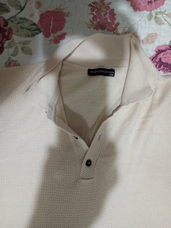 Erkekler için düğmeli yakalı polo tişört. Pamuklu, kısa kollu ve normal kesimdir. Beyaz pastel renk ve desensiz tasarımı günlük sokak giyimine uygundur.