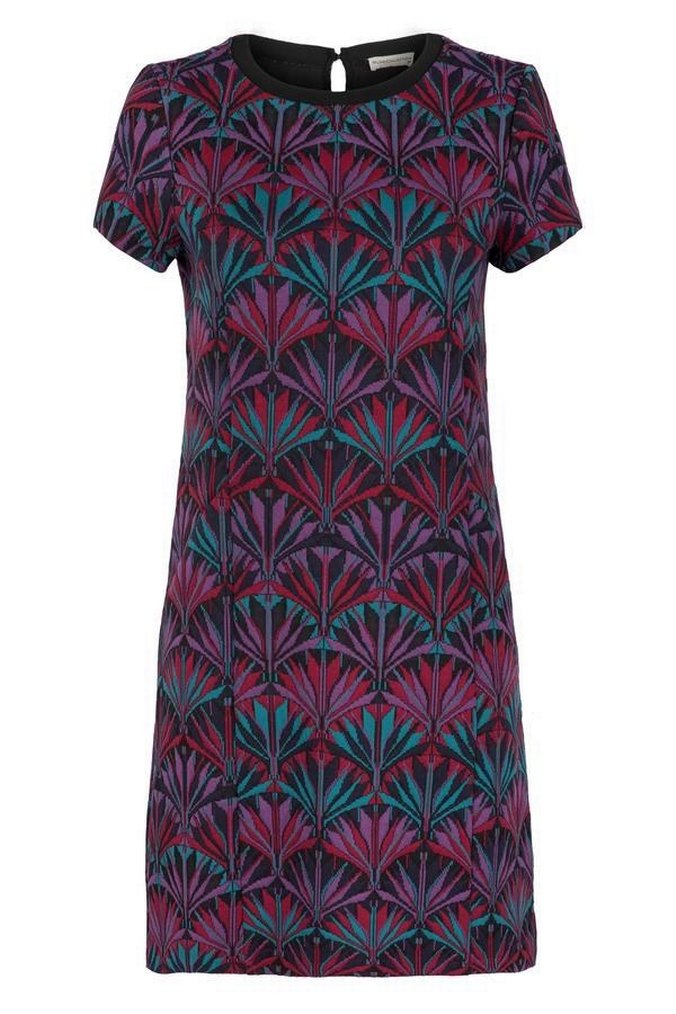 Kadınlar için , kısa kollu ve bisiklet yakalı mor tonlarında midi elbise. Bol kesimi ve retro desenleriyle bohem tarzı yansıtır. Romantik akşamlar için uygun.