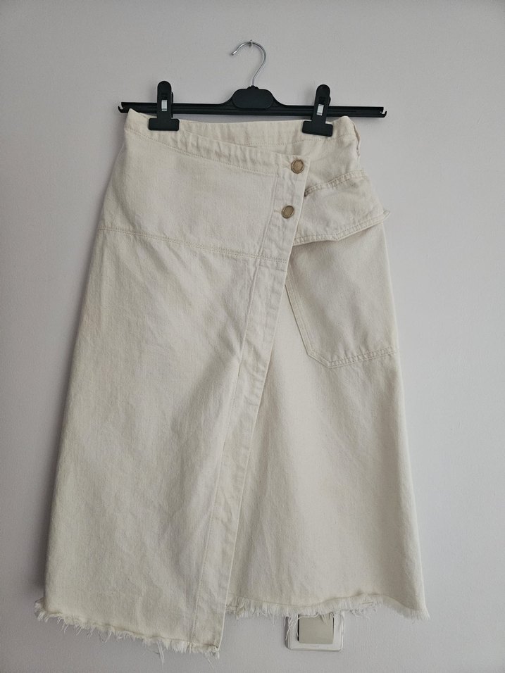Temizdir ben 1-2 kere giydim. 34-36 beden uyumludur. Düğmeli, bol kesim beyaz midi etek, günlük rahat kullanım için uygundur.